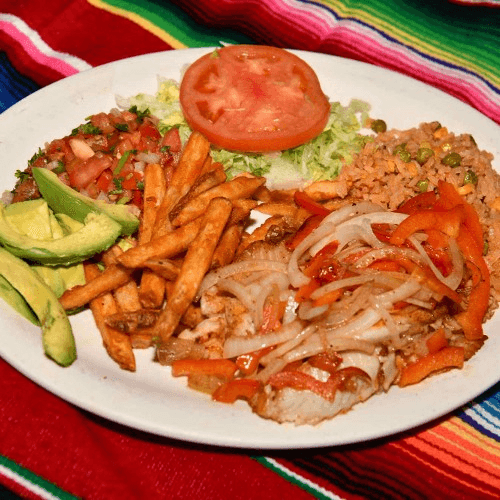 Served with French fries, rice, salad, avocado and pico de gallo