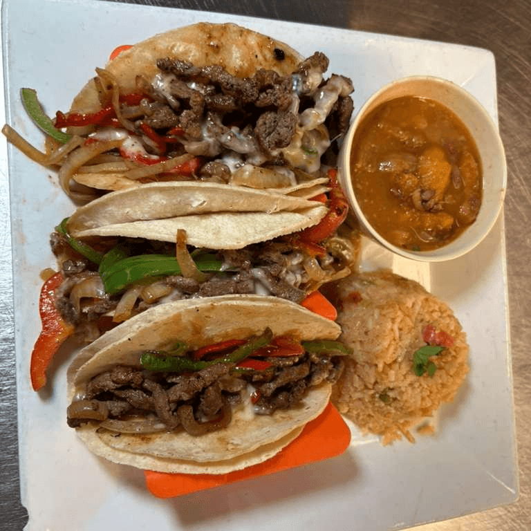 3 shrimp tacos sautéed with pico de gallo. Served with salad and mexican rice