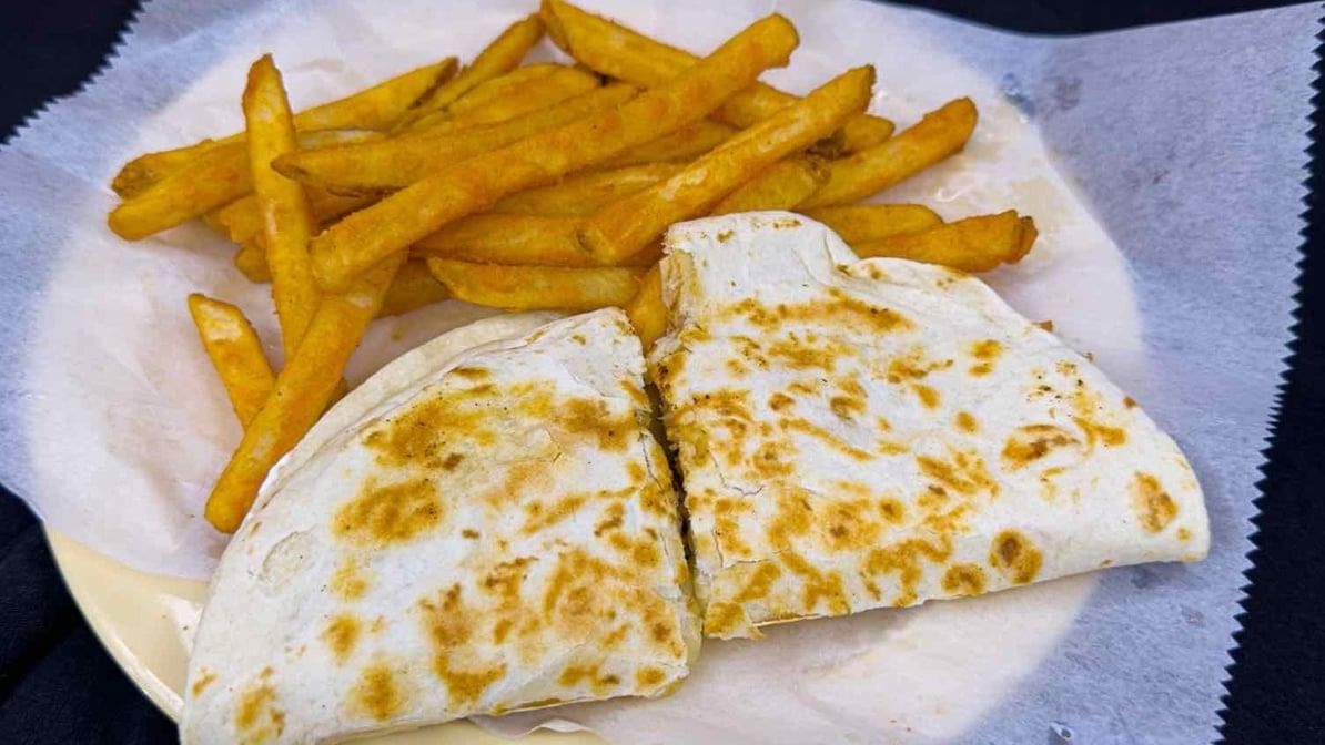 Quesadilla filled with choice of carne asada, barbacoa, al pastor, carnitas, ham, fajitas, tripe, chicken, carne guisada, or beef.