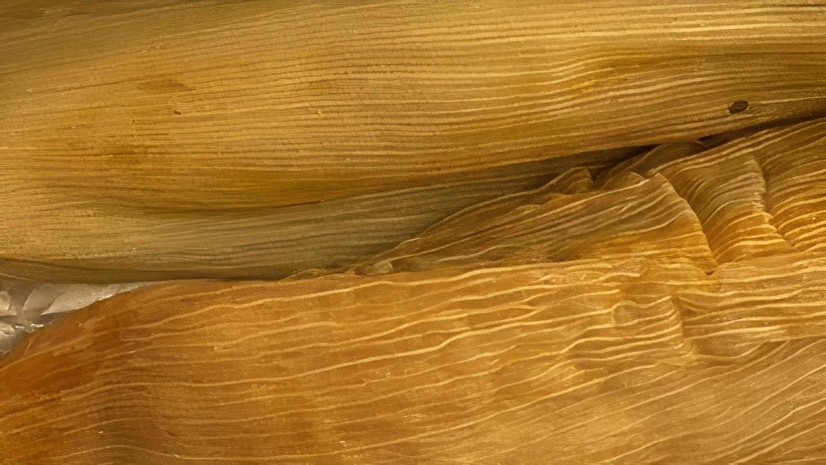 Corn masa dough filled with seasoned meat, wrapped in corn husks.